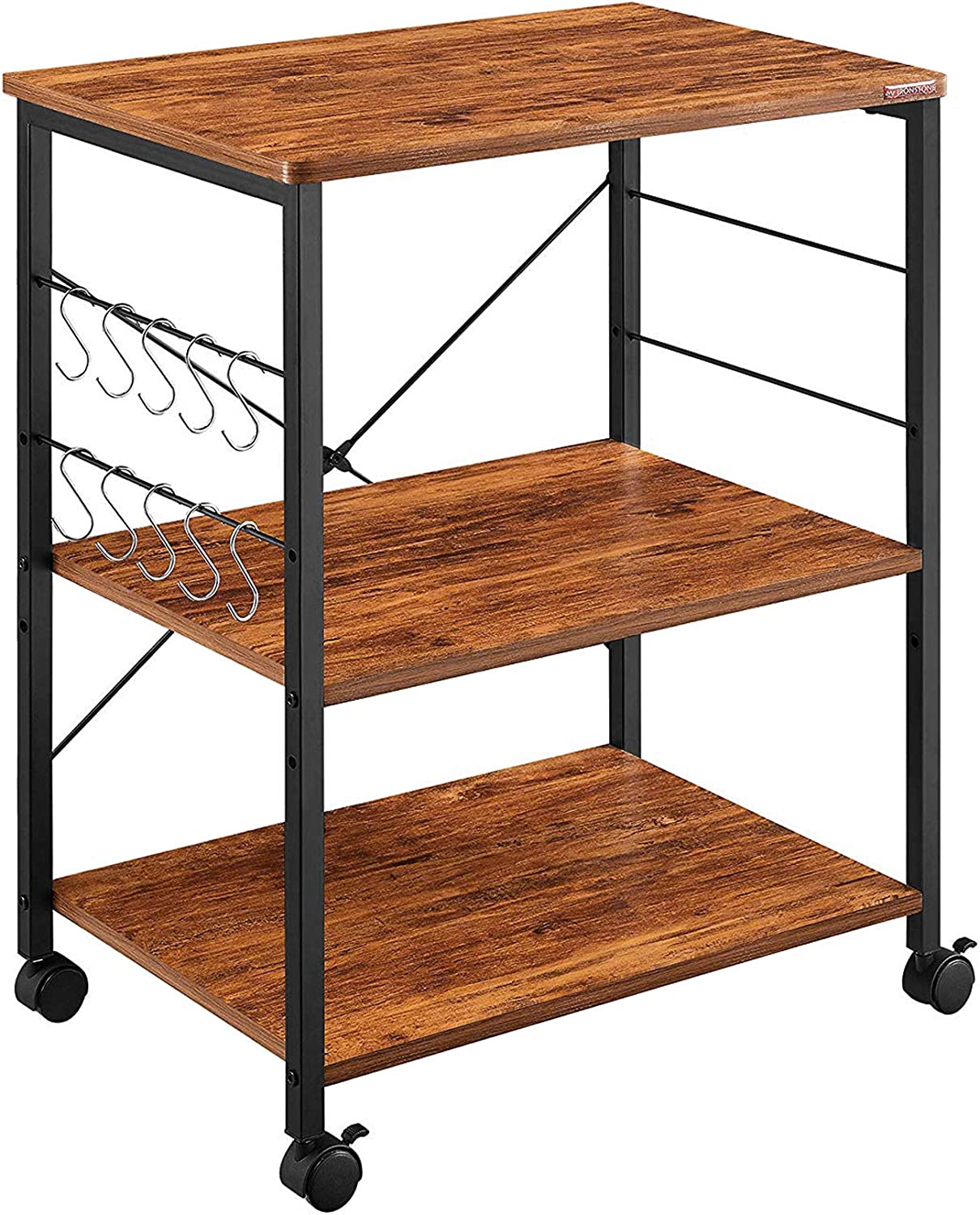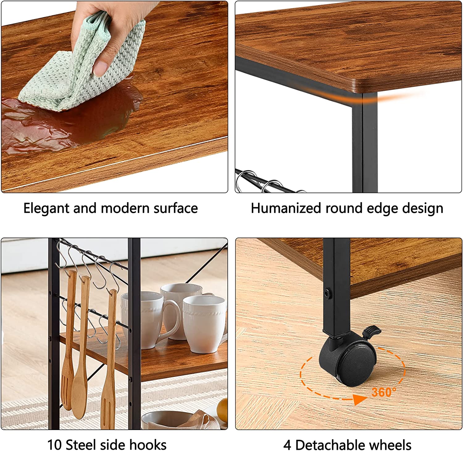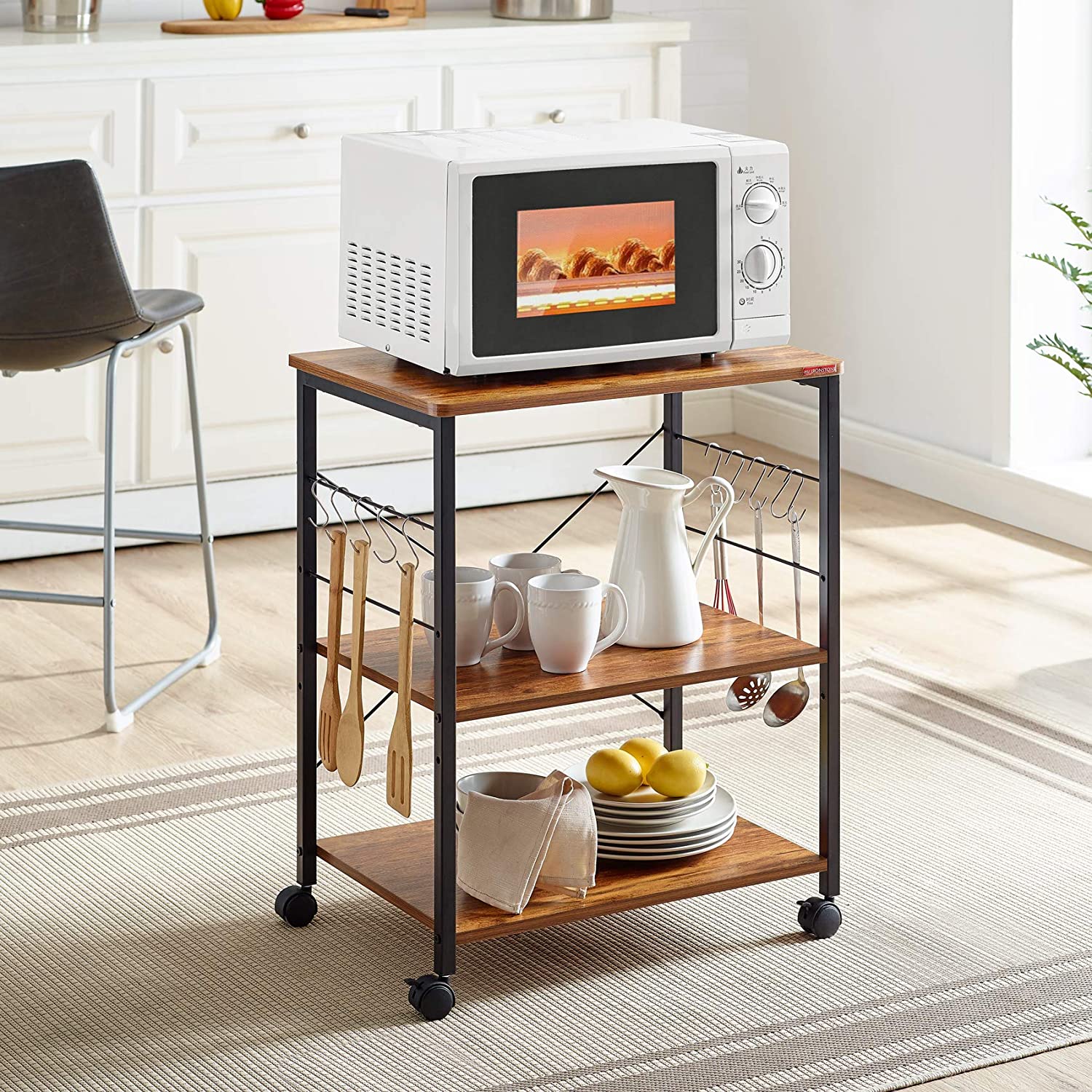🧿【Multipurpose Shelves Rack】The kitchen baker's rack has a great storage space. The strong top-shelf can easily hold a microwave oven, coffee maker, and other useful kitchen appliances. You can use second and third tiers to store the toaster, air fryer, spices, dishes, etc. The S-shaped hooks are very convenient for hanging cooking tools