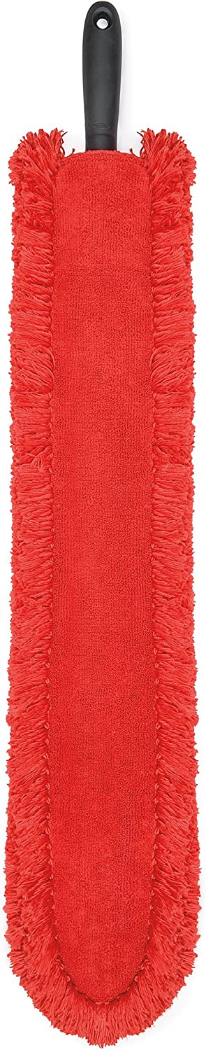 Our Slim Duster features a long, flat profile to go where other dusters don't: around and underneath appliances and cabinets. The long, fluffy fibers conform to uneven surfaces to capture dust bunnies. To clean the head, simply unsnap it and wash in cold water, then dry without heat.