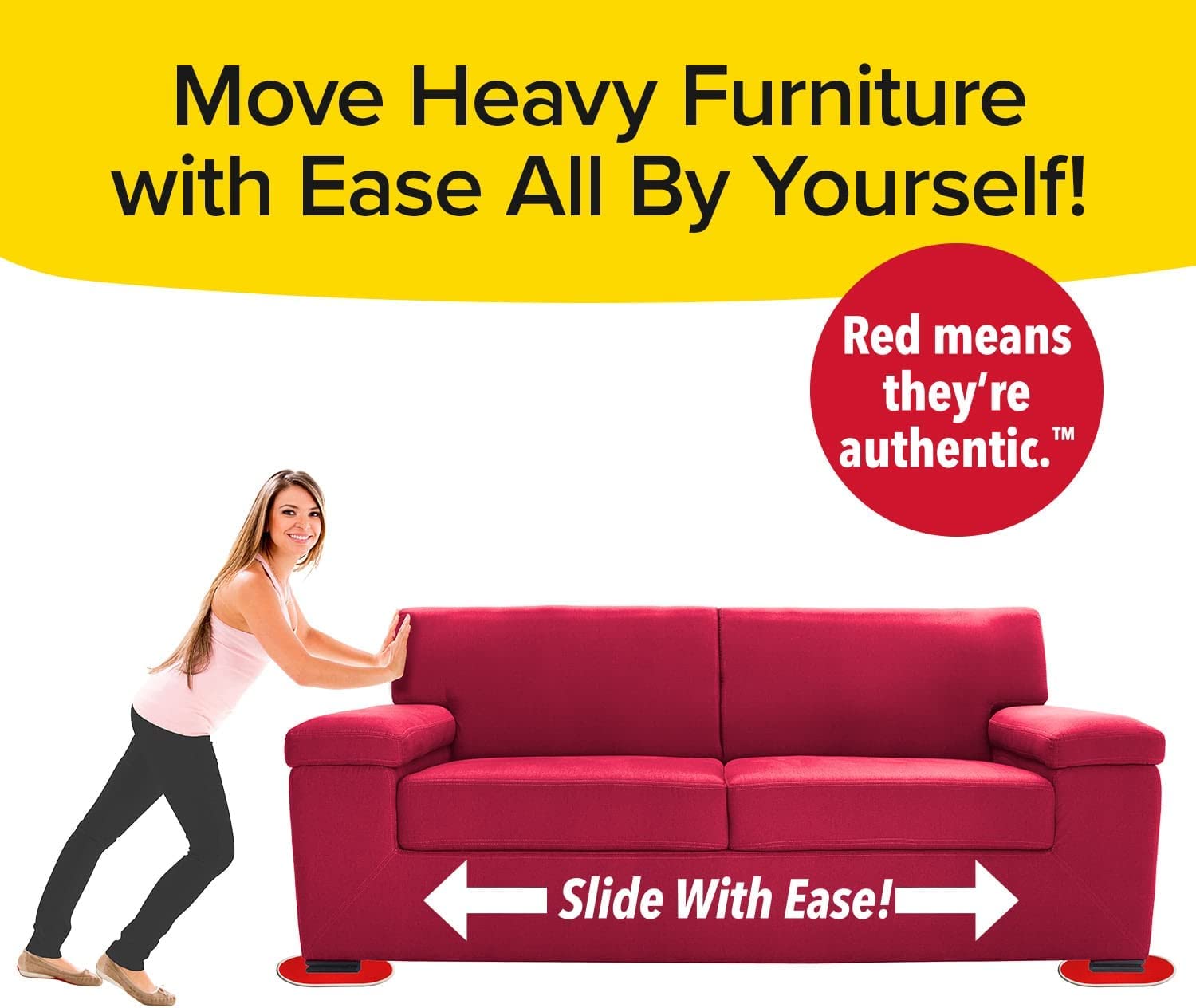 When you clean, it’s always what’s underneath that can’t be seen. To move heavy furniture, you have to struggle and strain. Do it too hard and you’ll end up in pain. Introducing RUBY Movers, the new way to move heavy furniture with ease. Simply place underneath and sliding is a breeze. RUBY Movers make it easy to move anything so you can clean thoroughly and find lost items. The secret is the grip-lock top that holds furniture solidly on the RUBY Movers and the nano-glide bottom that easily slides across the floor. Ready for a change? With RUBY Movers, it’s easy to rearrange and transform any room in minutes! Just lift, place, and push — it’s that simple! RUBY Movers work on carpets, ceramic tile, laminate, and vinyl tile. And they’re extra-large so they fit even the bulkiest legs. Heavy furniture can scratch your floor. Use RUBY Movers and you won’t have to worry about that anymore! Easily move heavy appliances like refrigerators, or swiftly slide cumbersome filing cabinets. You can even move a 1,000-pound piano! RUBY Movers are perfect for couches, recliners, dressers, beds, tables, cabinets, desks, and more!